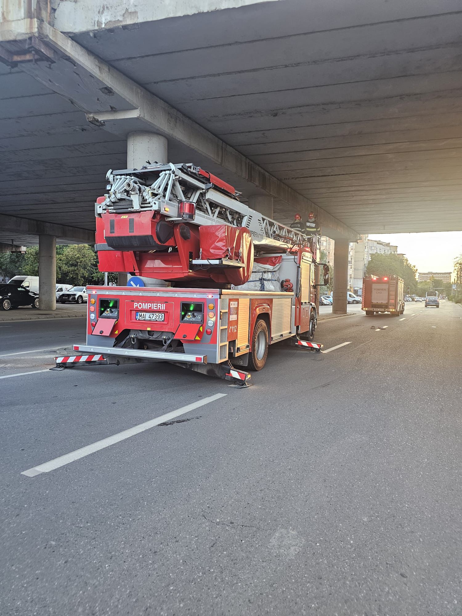 Pericol pentru șoferi! Intervenție a pompierilor la Pasajul Nicolina, pe Nicolae Iorga: cad bucăți din tavan direct pe bulevard