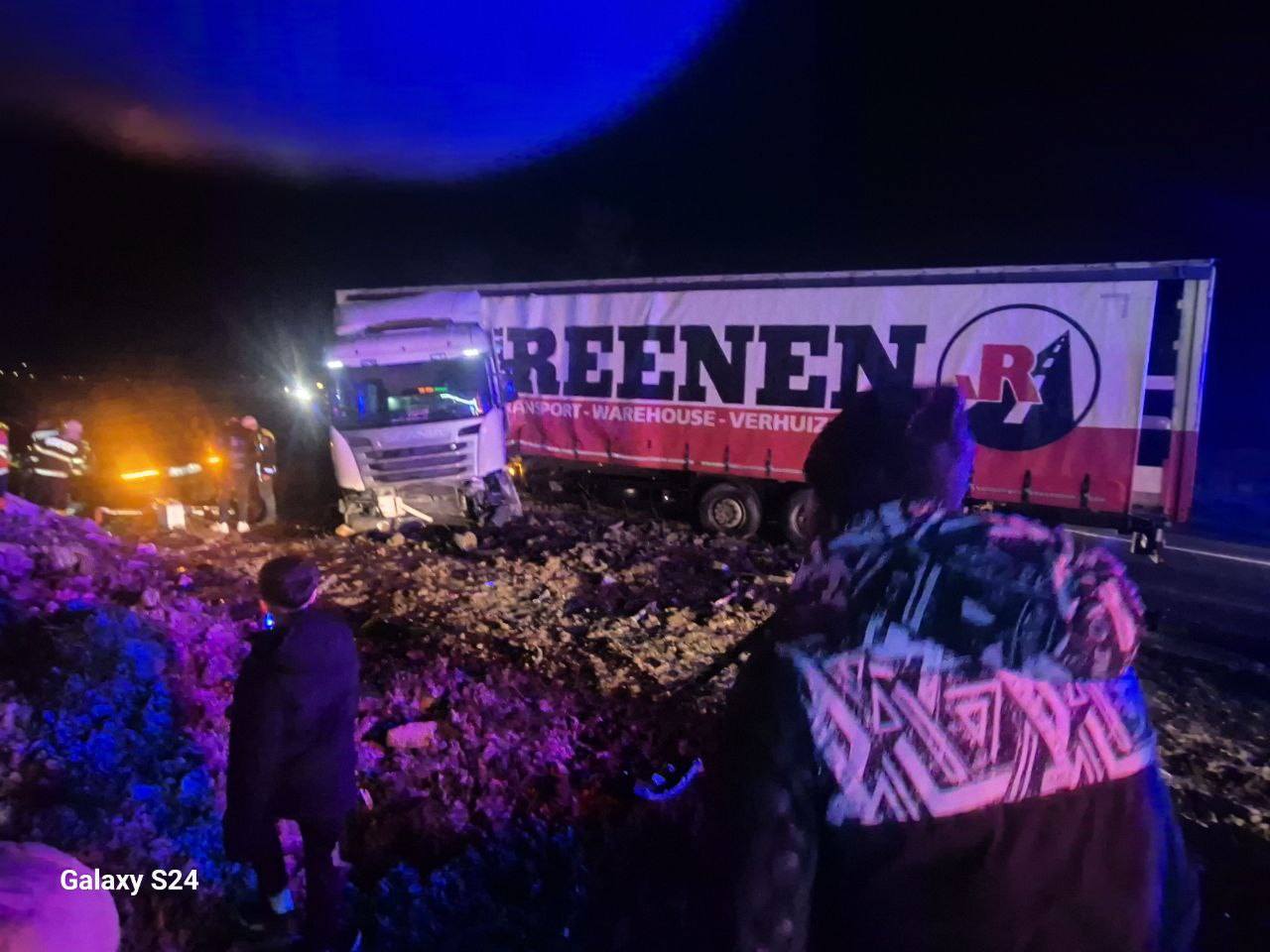 „Şoferul unui autocamion (cetăţean ucrainean) a fost găsit conştient şi a fost evaluat medical de echipajul Serviciului de Ambulanţă Judeţean. În accident au mai fost implicate două persoane aflate într-un autoturism, şofer şi pasager, ambii în vârstă de aproximativ 64 de ani. Aceştia erau conştienţi, au fost preluaţi de un echipaj EPA şi un echipaj SAJ tip B şi vor fi transportaţi la spital pentru investigaţii şi îngrijiri medicale”, a mai transmis sursa citată.