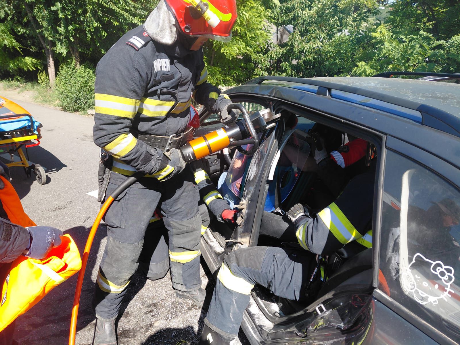 Două autoturisme au fost intrat în coliziune, iar în urma impactului, o persoană a fost găsită încarcerată, dar conștientă. La fața locului s-au deplasat de urgență echipaje medicale și de pompieri.