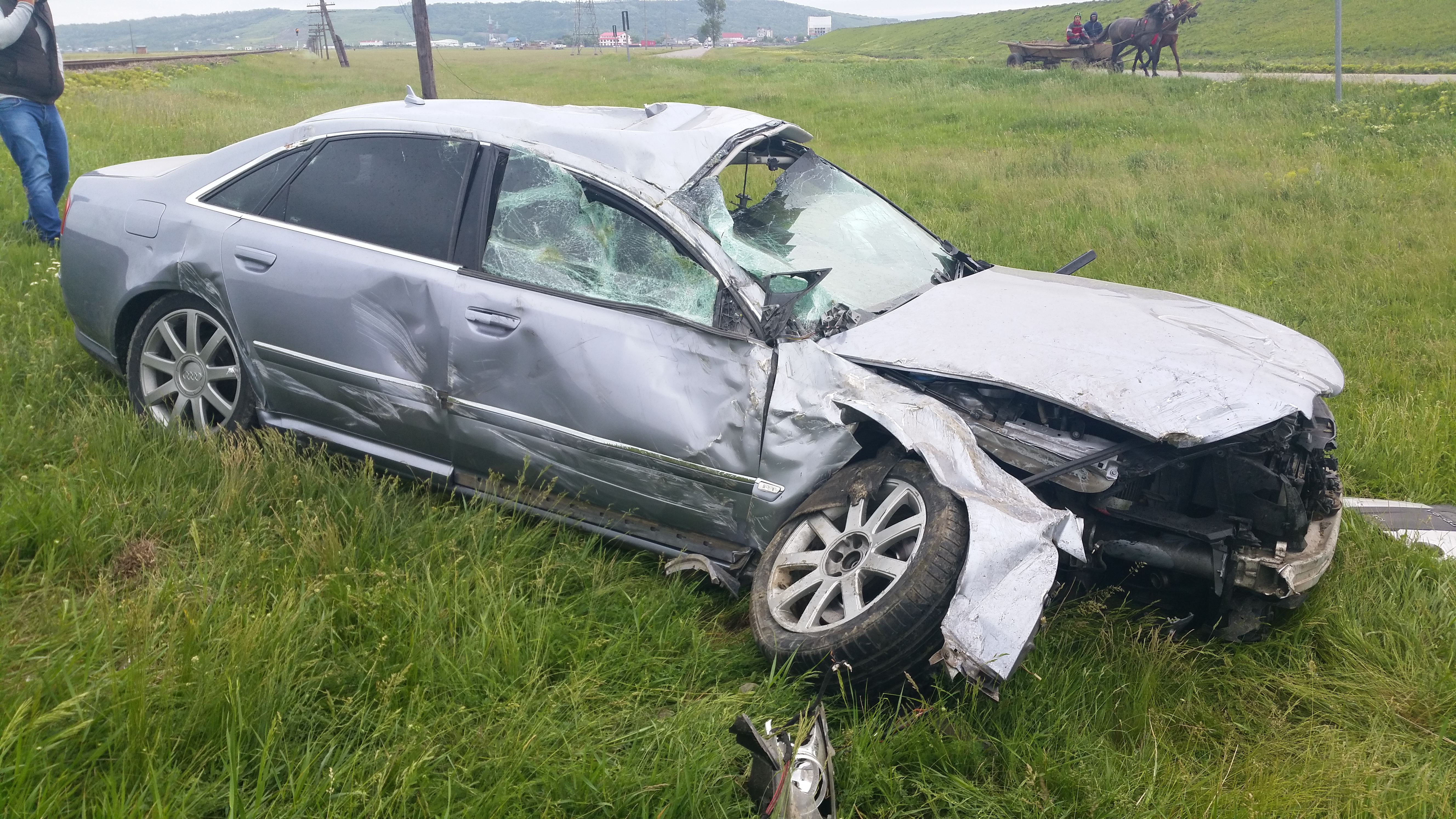 „Trecerea nu este semnalizată cum trebuie“, spune tânărul în cauză, accidentat în zona Podu Iloaiei. Indiciile din teren arată însă că a avut viteză în curba cu trecere la nivel. Maşina este distrusă în totalitate, el scăpând cu viaţă numai datorită dotărilor superioare ale mașinii.