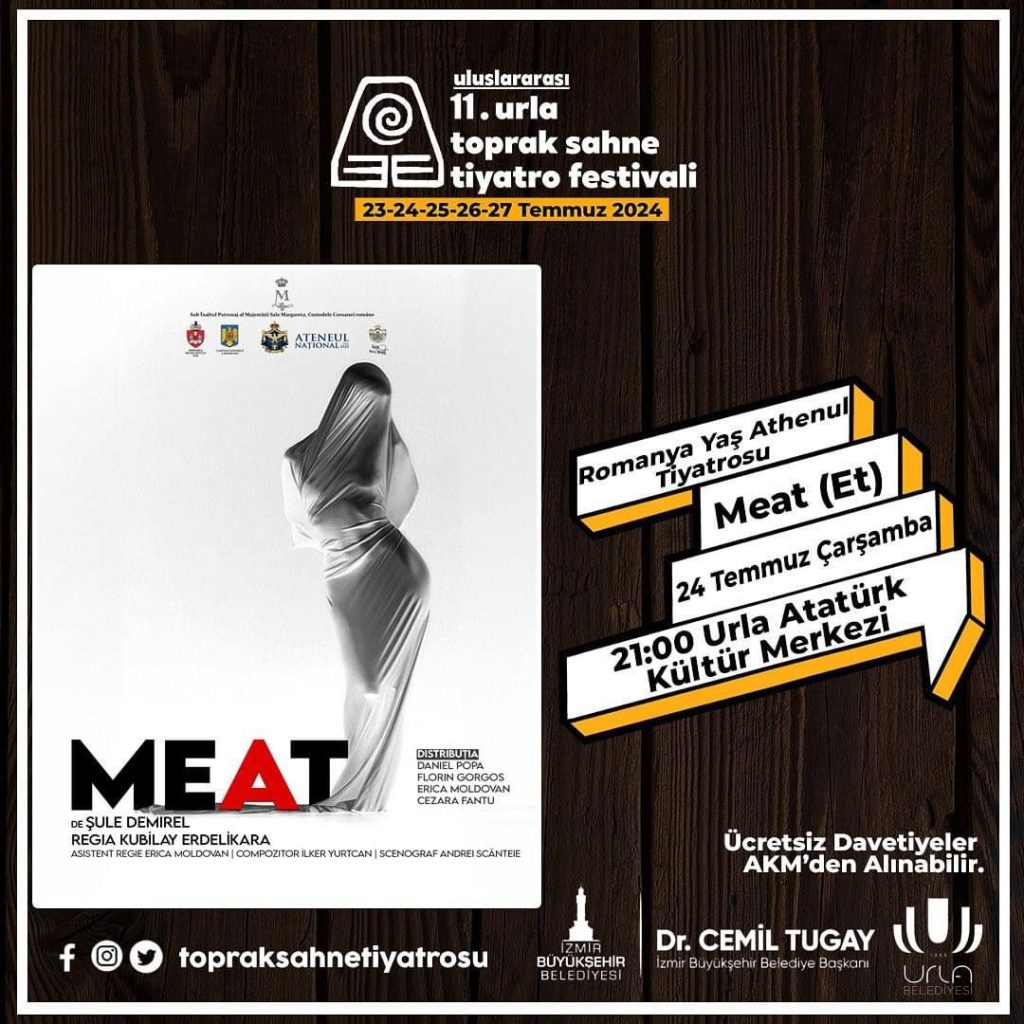 „Suntem onorați să participăm și anul acesta la unul dintre evenimentele internaționale dedicate teatrului. Echipa noastră revine cu bucurie în Turcia, de data aceasta la Festivalul de Teatru Urla Toprak și sperăm să surprindem publicul cu spectacolul «MEAT» în regia lui Kubilay Erdelikara”, a declarat managerul interimar al Ateneului Național din Iași, Gheorghiță Rusu-Persic.