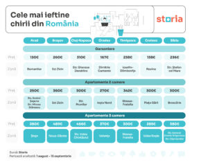 Analiza a fost realizată de Storia, cea mai vizitată platformă imobiliară din România, pe baza anunțurilor de închiriere active pe platformă în perioada 1 august – 15 septembrie 2025, din principalele orașe din țară: București, Arad, Braşov, Cluj-Napoca, Oradea, Timişoara, Craiova și Sibiu.