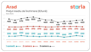 În ARAD, garsonierele se închiriază cu 220 de euro, un nivel constant față de anul trecut.