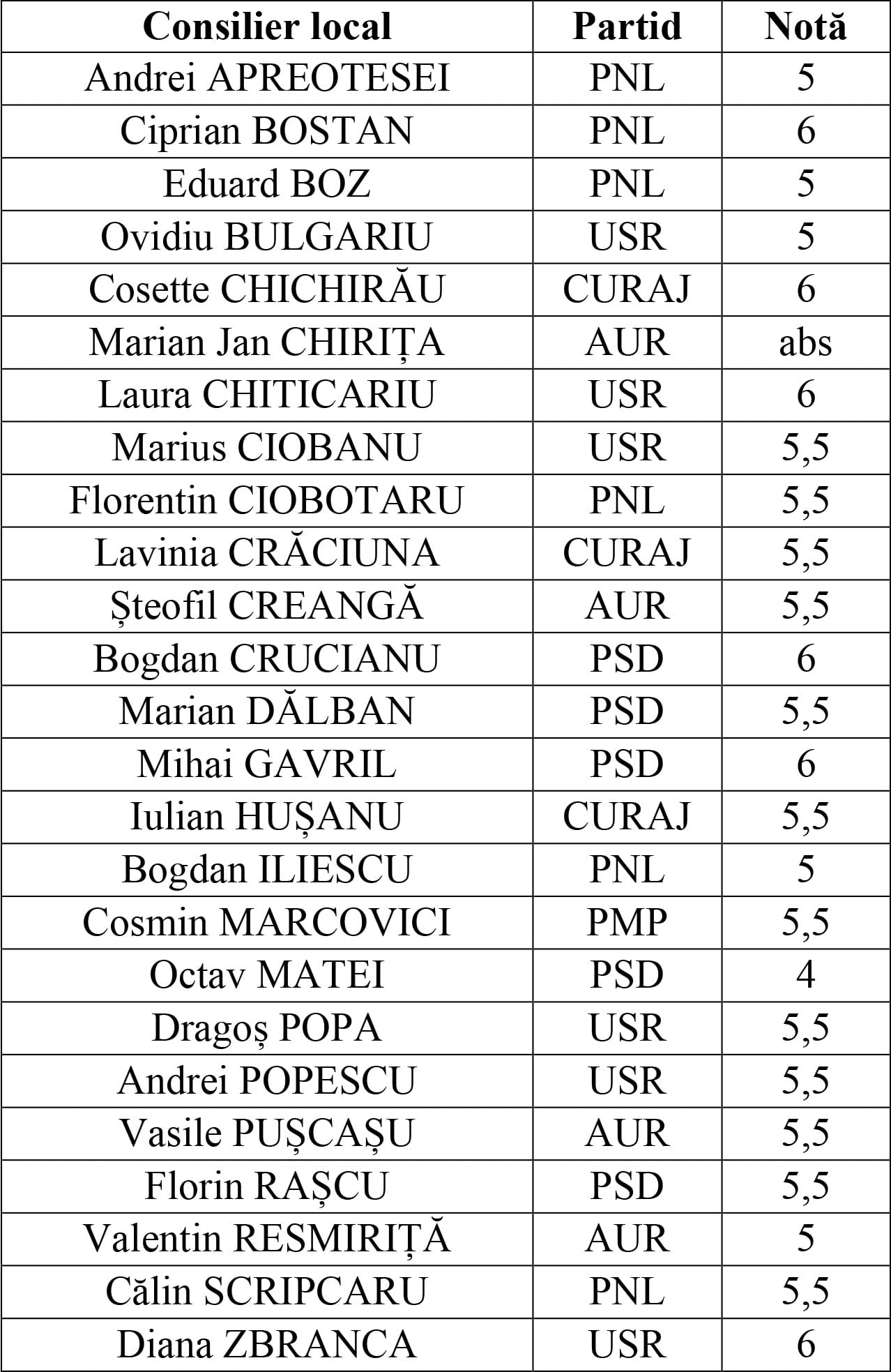 „Ziarul de Iași” publică catalogul de note pentru ședința ordinară a Consiliului Local (CL) din luna septembrie. Consilierii au arătat în continuare un apetit pentru a adresa interpelări și a cere socoteală executivului pe teme de interese general.