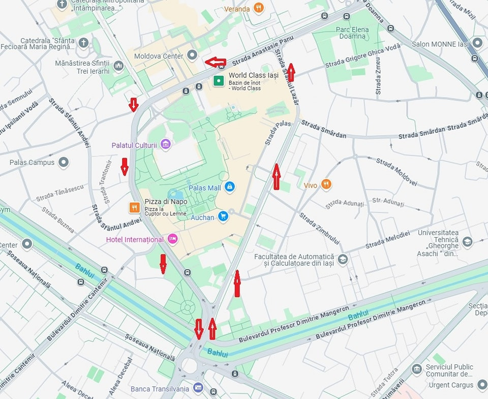 Conform Primăriei Iași, pe străzile Anastasie Panu, Palat și Sf. Lazăr va fi creat un „inel” cu circulație cu sens unic de coborâre pe strada Palat spre Podu Roș și cu sens unic de urcare dinspre Podu Roș pe strada Lazăr până la intersecția cu strada Anastasie Panu. Linia de tramvai va fi mutată la bordură.