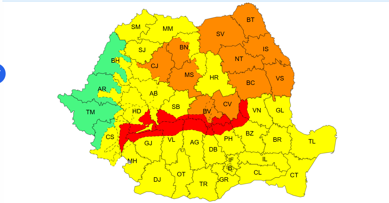 O avertizare cod portocaliu este în vigoare în intervalul 28 decembrie, ora 10 – 29 decembrie, ora 02.