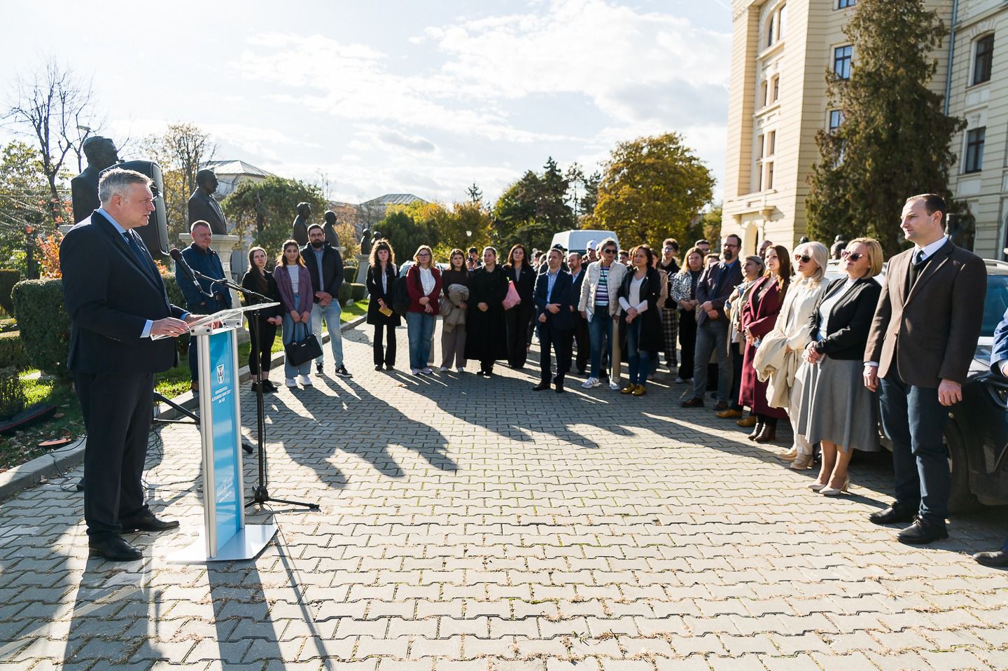 Evenimentul a debutat la ora 14 cu dezvelirea bustului lui Dimitrie Gusti, realizat cu sprijinul Primăriei Municipiului Iași, în prezența rectorului UAIC, prof. univ. dr. Liviu-George Maha, și a primarului Mihai Chirica. Bustul reprezintă un omagiu adus unuia dintre cei mai importanți reprezentanți ai sociologiei românești și ai comunității academice ieșene, iar cu această ocazie rectorul UAIC i-a oferit primarului medalia aniversară a Universității.