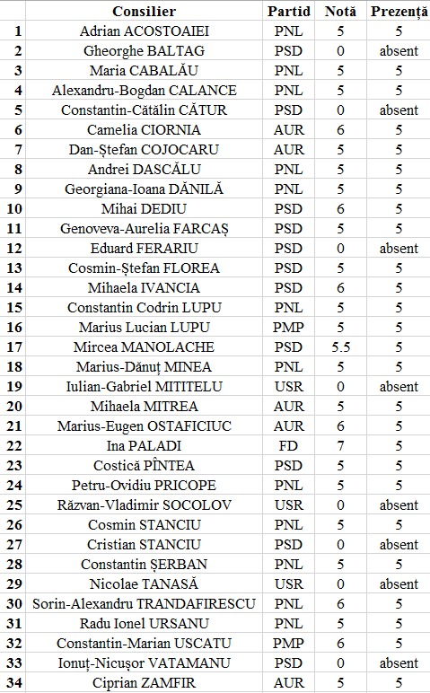 Vedeți AICI și notele consilierilor locali
