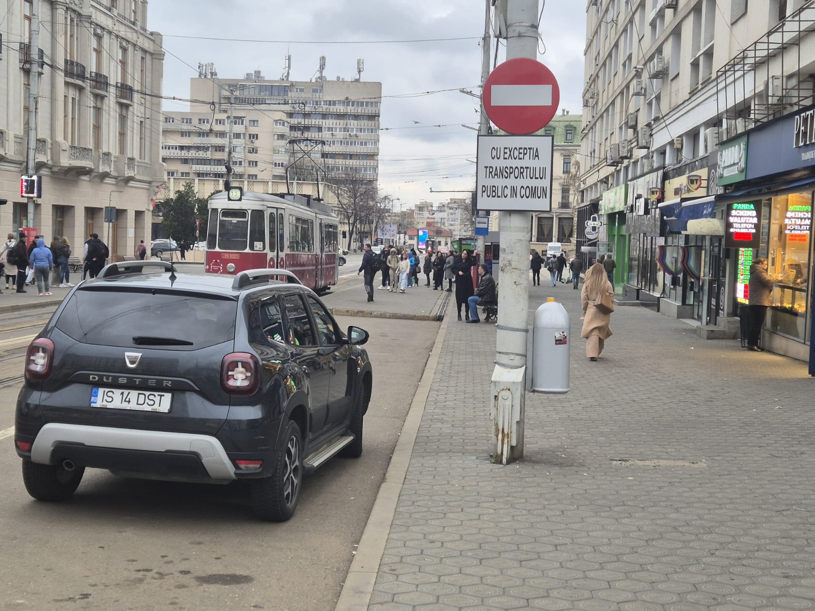 Acolo nu că oprirea este interzisă, dar și accesul este interzis, pe acea stradă, după cum se vede. Iar mașina lui dom’ premare, din care a coborât chiar el, că el o conduce mereu, nu șoferul sau vreun alt locotenent, ei bine, mașina e mai mult de jumătate după semnul Accesul interzis.