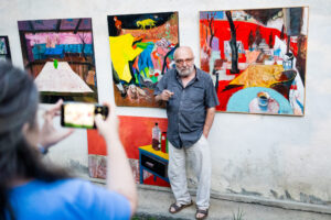 Când credeam că ziua se încheie după aventura gastronomică, am avut parte de o surpriză: o vizită la casa-galerie a pictorului Dumitru Macovei, născut în Solonț, dar stabilit la Moinești, acolo unde trăiește și pictează, transformându-și locuința într-un spațiu cultural viu.