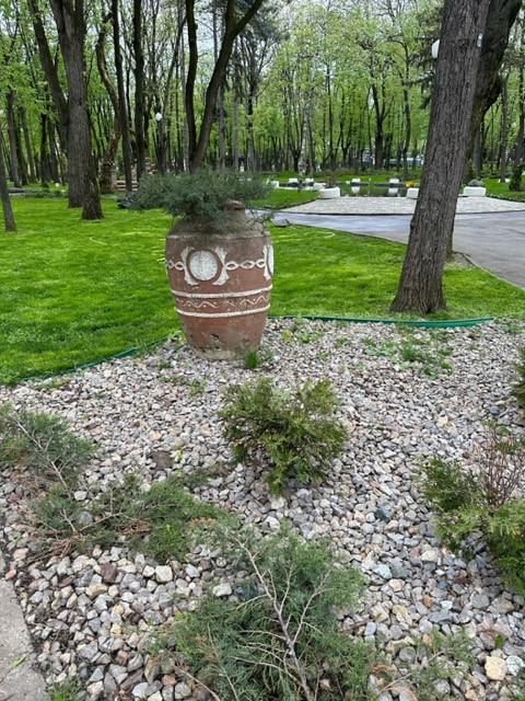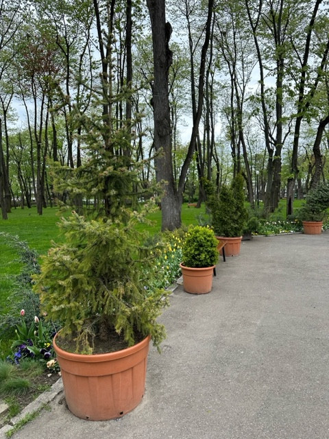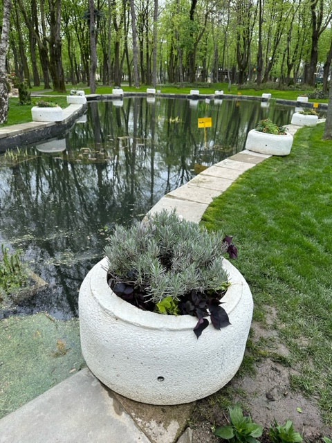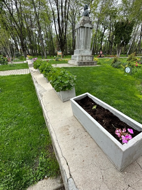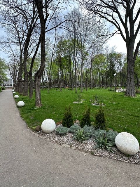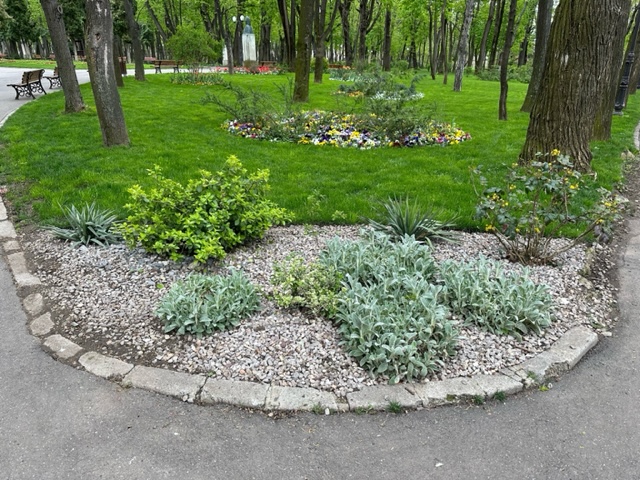 Haosul piesagistic din parc este din ce în ce mai aproape de modelul cu care ne-am obişnuit deja (din păcate) pe pietonalul Ştefan cel Mare. Disperaţi, o parte din arhitecţii pe care-i am pe Facebook îşi strică indignarea şi-şi oferă gratuit serviciile doar pentru a stopa aglomerarea fără nicio noimă de elemente de mobilier urban. Ghivecele cu flori sau copaci apărute peste noapte, fie ele din plastic sau ceramică, aşezate pe suporturi de fier forjat sau de beton, agăţate de foişoare sau plantate pe marginea ochiului artificial de apă, în nişte structuri circulare care arată ca resturi de anvelope uzate de la o vulcanizare, vopsite în alb; pietrele albe rotunde, similare cu cele de pe strada Cuza-Vodă, dinspre Palatul Oştirii; pietre decorative aruncate aleatoriu (raportat la planul parcului) la rădăcinile unor copacii sau arbuşti etc. arată ca şi cum cineva ar încerca din greu să prepare, sub teiul lui Eminescu, o şaorma cu de toate.