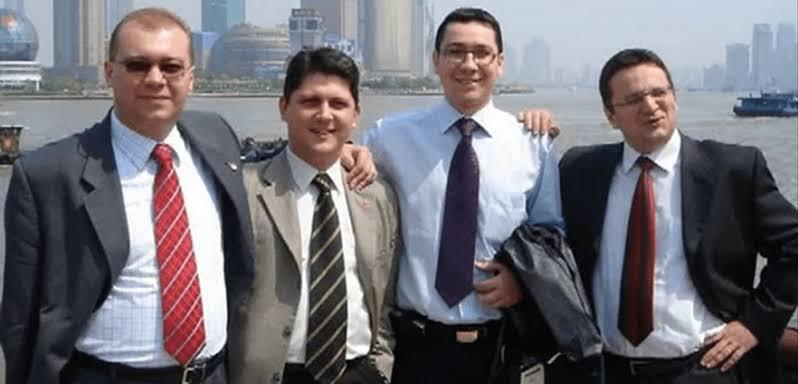 De la stânga la dreapta, dacă nu ați recunoscut personagiile, toți buni amici, sunt Dan Mihalache, fost consilier prezidențial al lui Iohannis în primul mandat, pus apoi ambasador în SUA; Titus Corlățean, fost menistru de Externe, acum contracandidat al lui Grindeanu la alegerile din PSD, și care promite alianță cu AUR; Victoraș Ponta, cel care pe atunci făcea naveta spre China; Liviu Maior, fost șef al SRI, devenit ulterior ambasador în SUA.