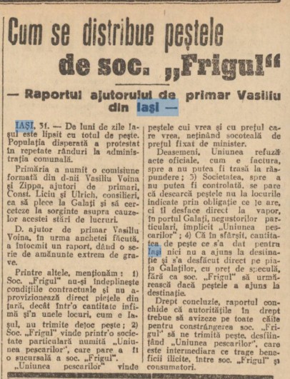 Problema era serioasă: Iașul nu mai primea transporturile regulate de pește din portul de la Dunăre, iar suspiciunile se îndreptau spre Societatea „Frigul“, cea care deținea monopolul transportului și al depozitării produselor alimentare perisabile.