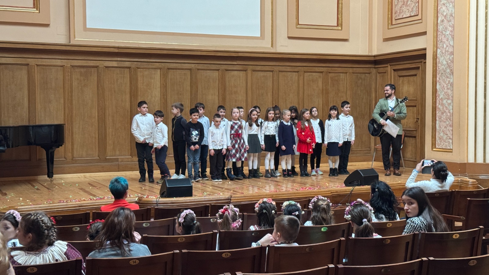 Pe scenă au urcat și prichindei din clasele primare. Elevii clasei I de la Școala Gimnazială „Gheorghe I. Brătianu”, coordonați de învățătorul Ioan Filip, au interpretat un cântec din filmul Veronica, acompaniați la chitară chiar de cadrul didactic.