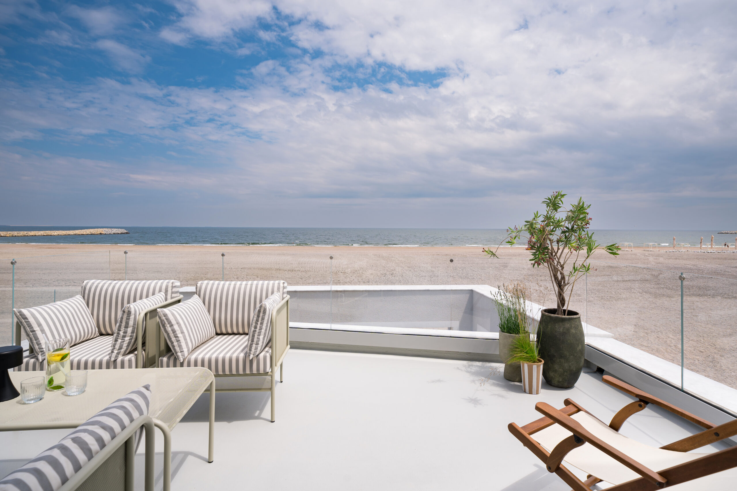 Hotelul este situat pe plaja dintre cele două Eforii, la intersecția dintre Marea Neagră și lacul Techirghiol. Are 20 de camere cu design unic, realizat de Annterior Studio în estetica wabi-sabi, concept care definește arta de a găsi frumusețea în imperfecțiune, autenticitate și în contemplarea naturii. În design s-au folosit materiale naturale precum lemn, piatră, textile de in, cânepă, bumbac, răchită, obiecte vintage – un perete din lemn recuperat dintr-o șură din Transilvania -, într-o cromatică integrată în peisajul litoralului românesc. Sculpturile amplasate atât în interior, cât și în exterior sunt realizate de artistul local George Culea în piatră de Techirghiol.