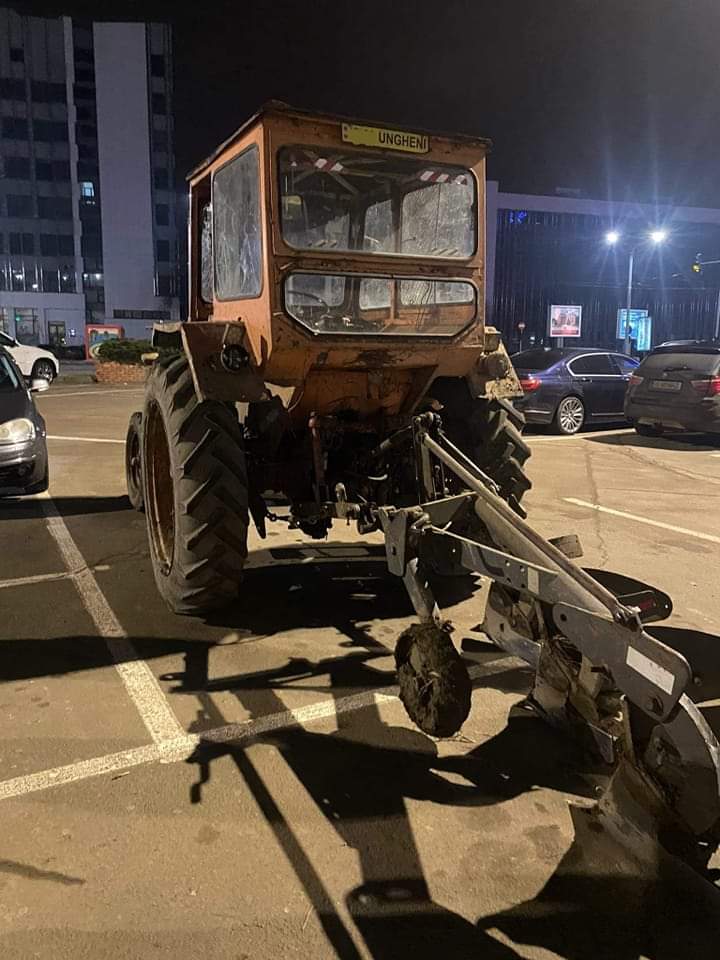 Doi indivizi beţi au venit sâmbătă la Iulius Mall cu tractorul cu plug. Cei doi au venit tocmai de la Bosia, beţi şi fără permis de conducere.