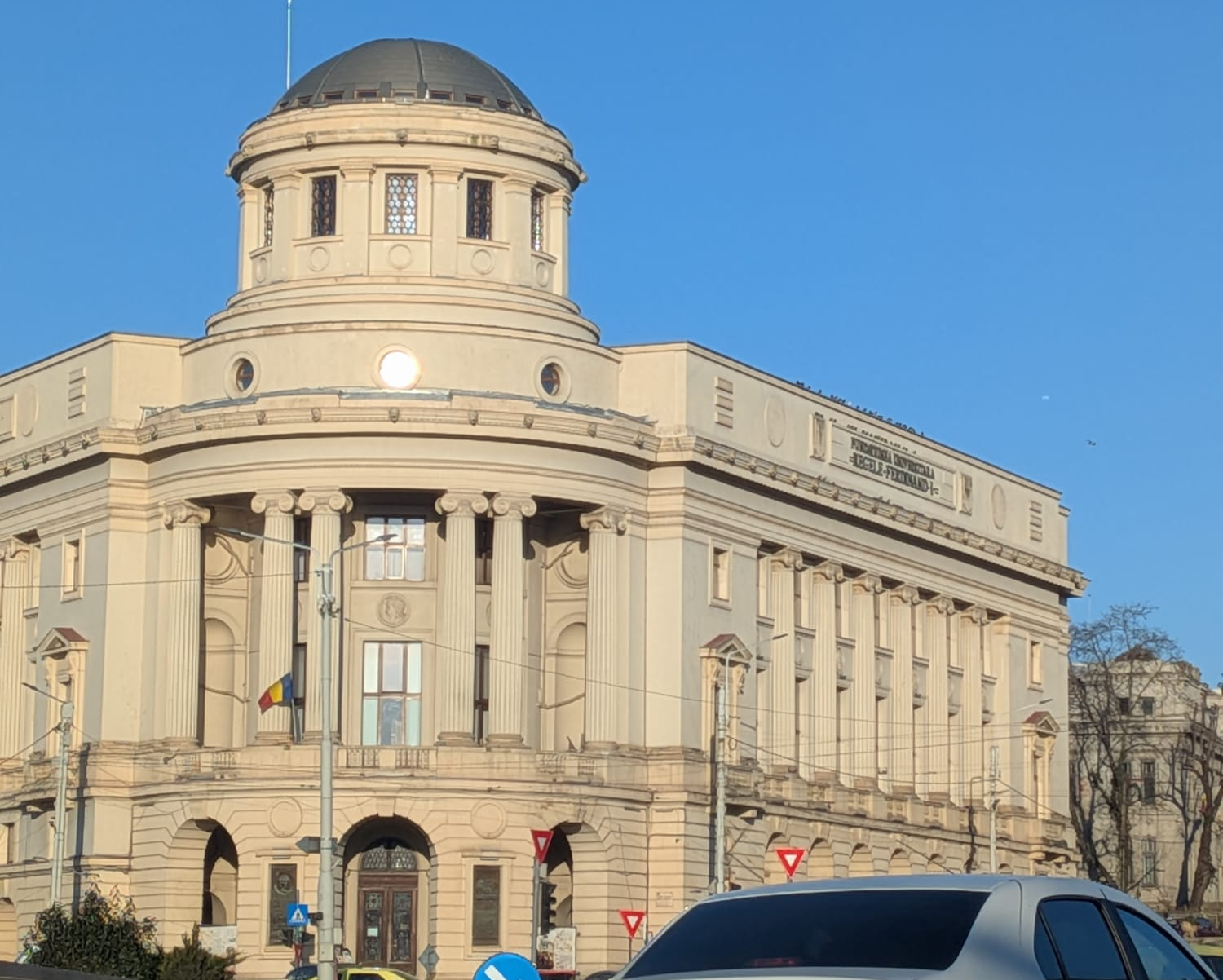 Dar, în fine, haideți să schimbăm olecuță registrul, ca să trecem pe chestiuni mai haioase. Iată o fotografie trimisă de un cetitor, care ne întreabă de ce aicea avem doar steagul României, nu și al Uniunii Europene?