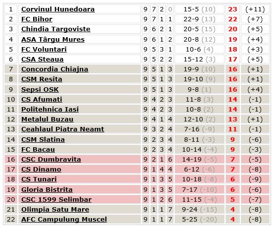 Clasamentul la zi al Ligii a II-a de fotbal arată astfel: