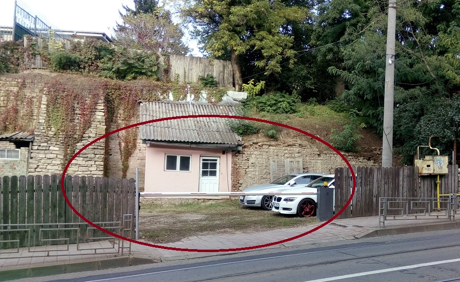 O curte de pe strada Arcu a fost transformată în parcare. O parte a gardului a fost înlocuită cu o barieră, iar în interior încap până la cinci-șase mașini.