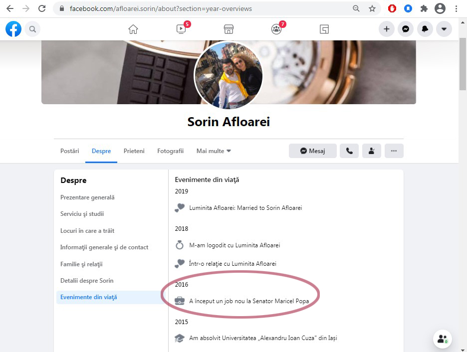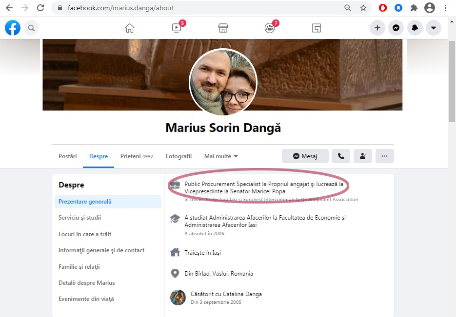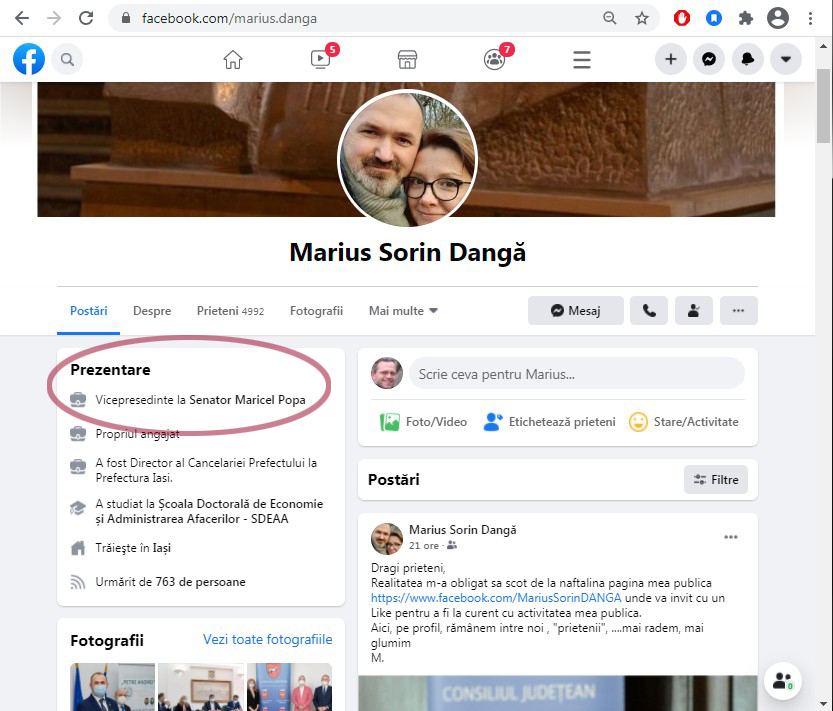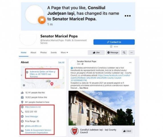 FOTO: capturi pe fosta pagina de Facebook CJ iași, devenită ”senator Maricel Popa”