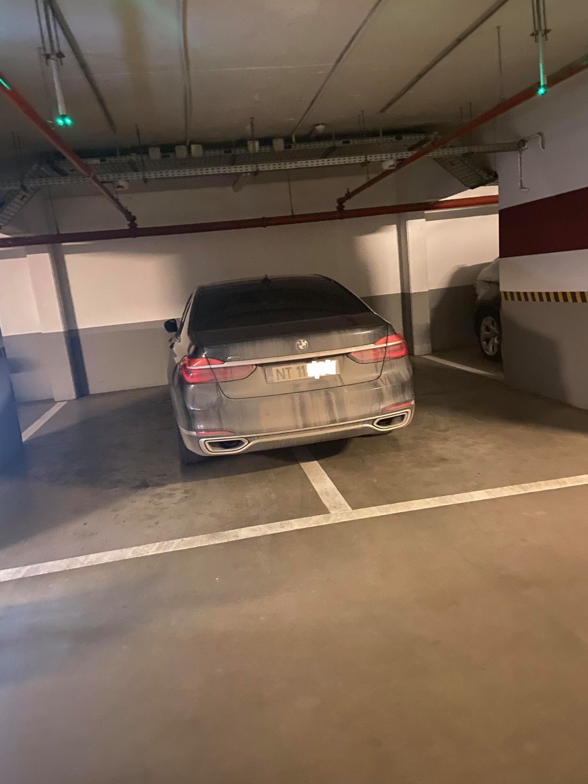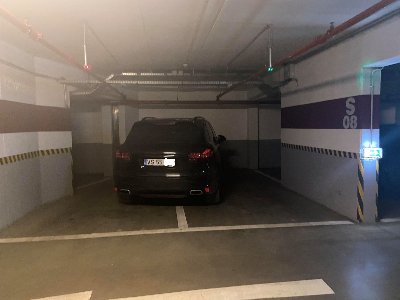 Iată indicațiile senzorilor de parcare de deasupra: în zona ocupată de BMW cele două locuri sunt libere, în zona în care se află mașina de teren, un singur senzor arată că locul e ocupat.