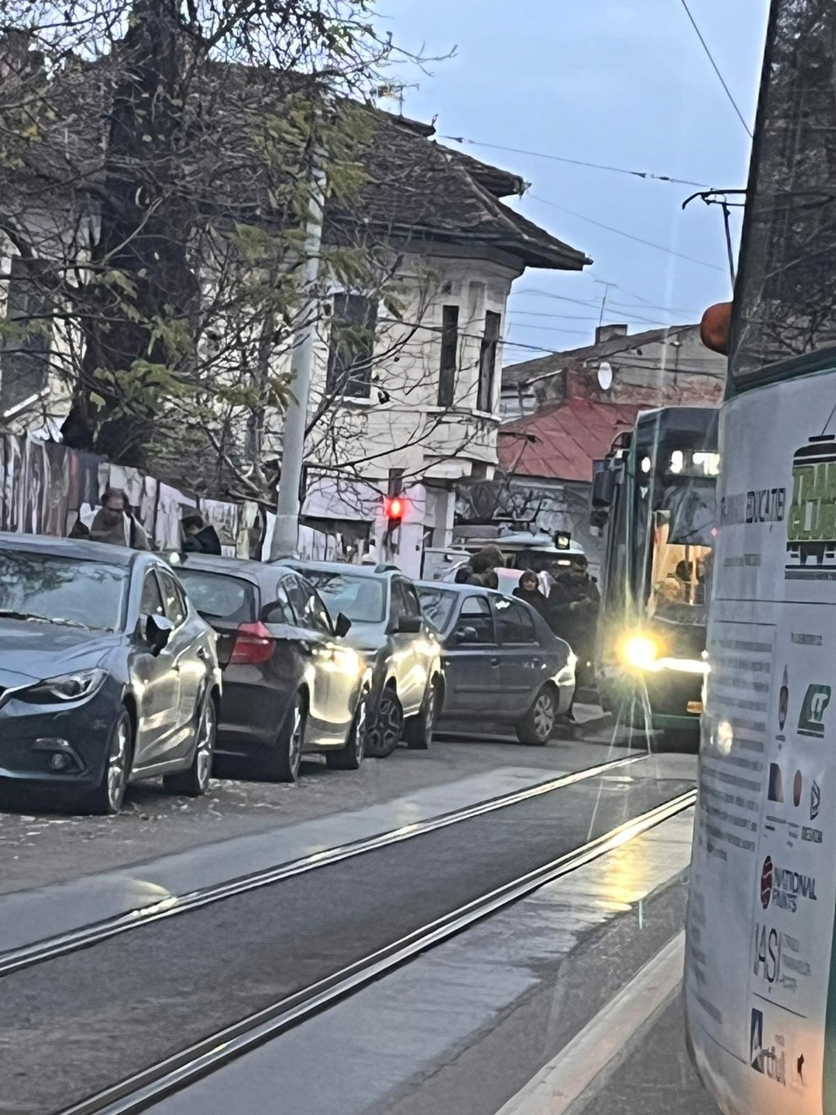FOTO/VIDEO – Trafic blocat în Copou: Un șofer și-a parcat mașina aproape de linia de tramvai și a dispărut