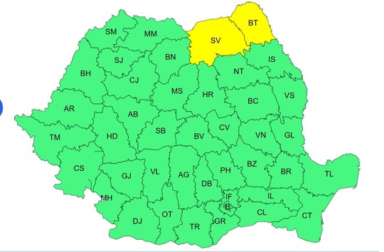 Pentru sâmbătă, până la ora 20.00, a fost emisă o atenţionare meteorologică cod galben de ger şi temperaturi deosebit de scăzute, situate în jurul valorii de -10 grade, pentru nordul Moldovei.