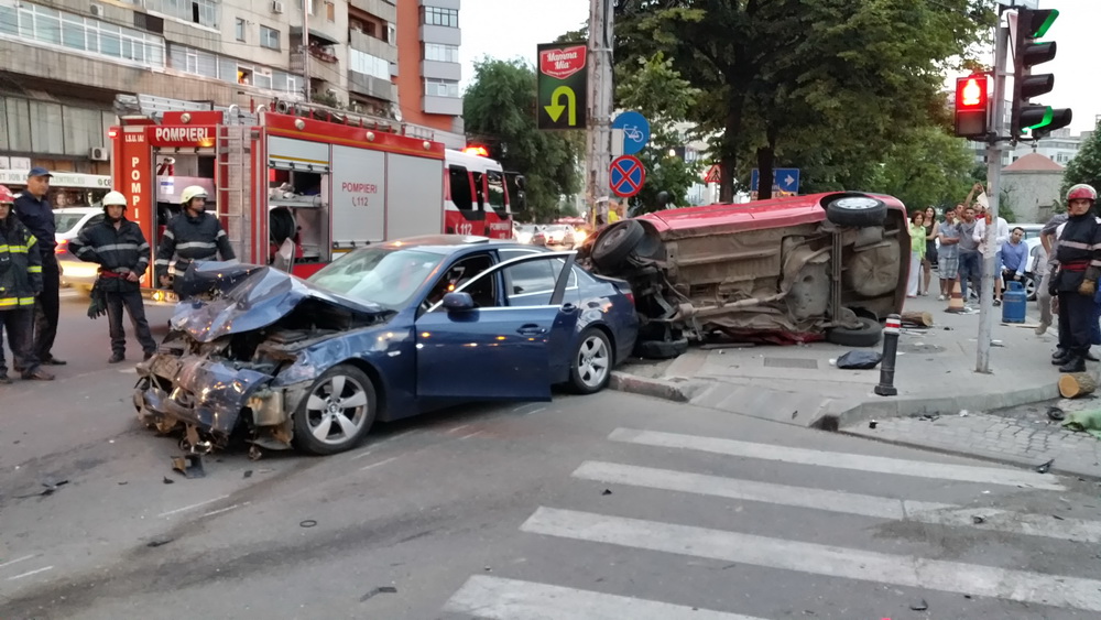 Evenimentul rutier a avut loc în jurul orei 20.15, iar în urma impactului deosebit de violent dintre cele două maşini, Logan-ul s-a răsturnat şi s-a izbit cu cupola de un stâlp de electricitate aflat pe marginea şoselei. „Şoferul autoturismului a fost scos din interior cu mare greutate şi a leşinat. Cred ca era rănit cel mai grav. Mai erau doi în BMW, au fost şi ei transportaţi la spital, dar erau conştienţi“, a mai spus un martor.