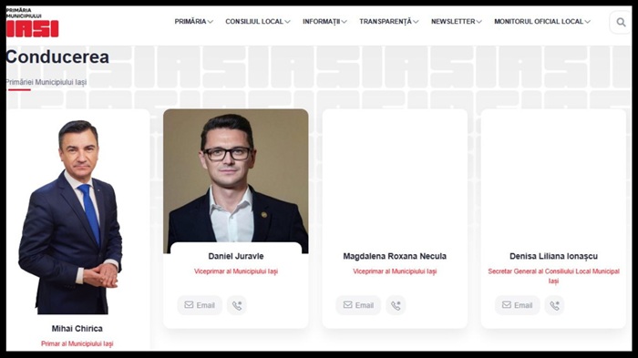 Este vorba taman de pagina pe care se află Conducerea instituțiunii, stimați petenți sau dragi contribuabili. Iar aicea, ce să vezi: deși sunt patru nume mari și late, avem doar două care au atașate și poze (vezi și AICI)