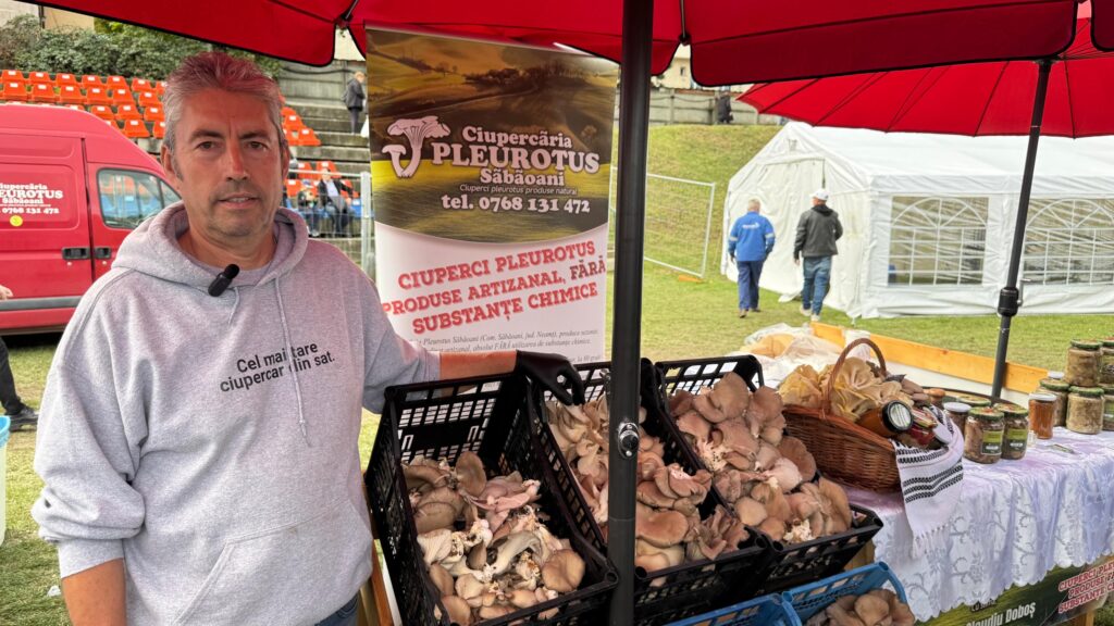Printre producătorii prezenți la „Zilele Recoltei”, reporterii „Ziarul de Iași” l-au găsit pe Claudiu Doboș, reprezentantul Ciupercăriei Pleorotus din Săbăoani. Amplasat chiar la intrare, toți vizitatorii se opreau pentru a arunca o privire asupra hibrizilor de Pleurotus și preparate din ciuperci: