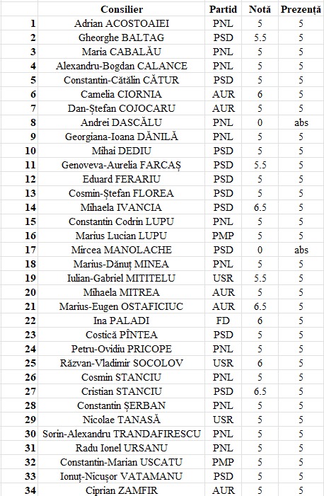 Notele consilierilor pentru ultima reuniune a verii. A fost cea mai animată ședință a CJ Iași. „Nu se va mai întâmpla”, promite Costel Alexe.