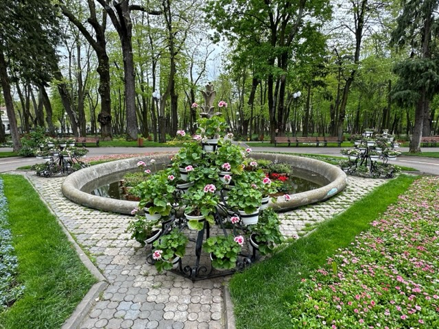 Haosul piesagistic din parc este din ce în ce mai aproape de modelul cu care ne-am obişnuit deja (din păcate) pe pietonalul Ştefan cel Mare. Disperaţi, o parte din arhitecţii pe care-i am pe Facebook îşi strică indignarea şi-şi oferă gratuit serviciile doar pentru a stopa aglomerarea fără nicio noimă de elemente de mobilier urban. Ghivecele cu flori sau copaci apărute peste noapte, fie ele din plastic sau ceramică, aşezate pe suporturi de fier forjat sau de beton, agăţate de foişoare sau plantate pe marginea ochiului artificial de apă, în nişte structuri circulare care arată ca resturi de anvelope uzate de la o vulcanizare, vopsite în alb; pietrele albe rotunde, similare cu cele de pe strada Cuza-Vodă, dinspre Palatul Oştirii; pietre decorative aruncate aleatoriu (raportat la planul parcului) la rădăcinile unor copacii sau arbuşti etc. arată ca şi cum cineva ar încerca din greu să prepare, sub teiul lui Eminescu, o şaorma cu de toate.