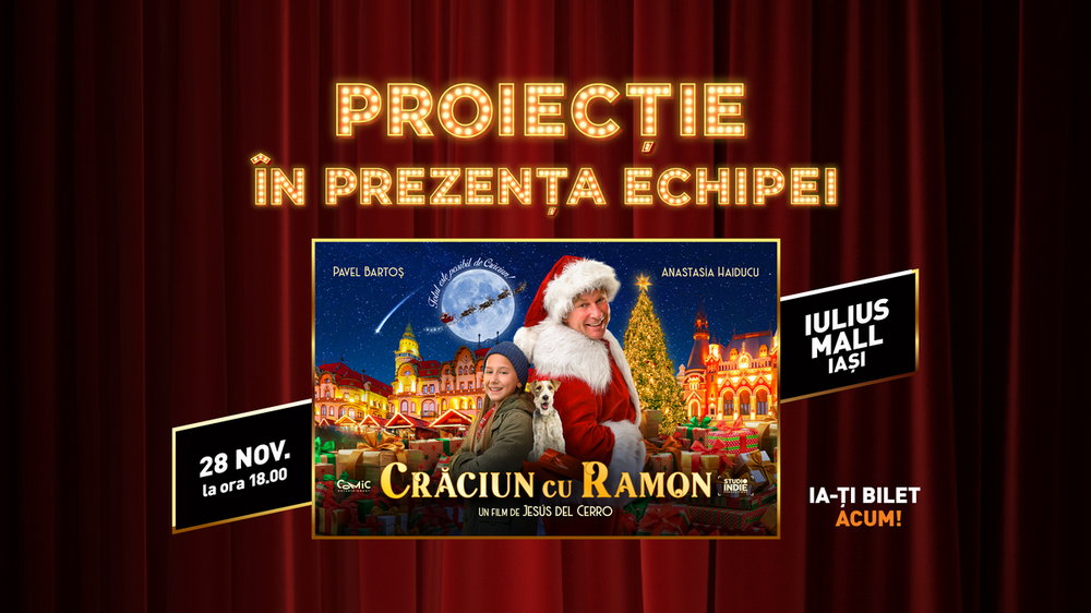 Magia sărbătorilor pornește la drum, iar vineri, 28 noiembrie 2025, de la ora 18.00, ajunge la Cinema City Iași cu cel mai așteptat film românesc din acest sezon, „Crăciun cu Ramon”. Vei avea ocazia să îi întâlnești pe Pavel Bartoș, Jesús del Cerro și Bogdan Horga, care vor fi prezenți la proiecție și vor discuta cu publicul. Poți să îți achiziționezi deja bilete de pe site-ul Cinema City.