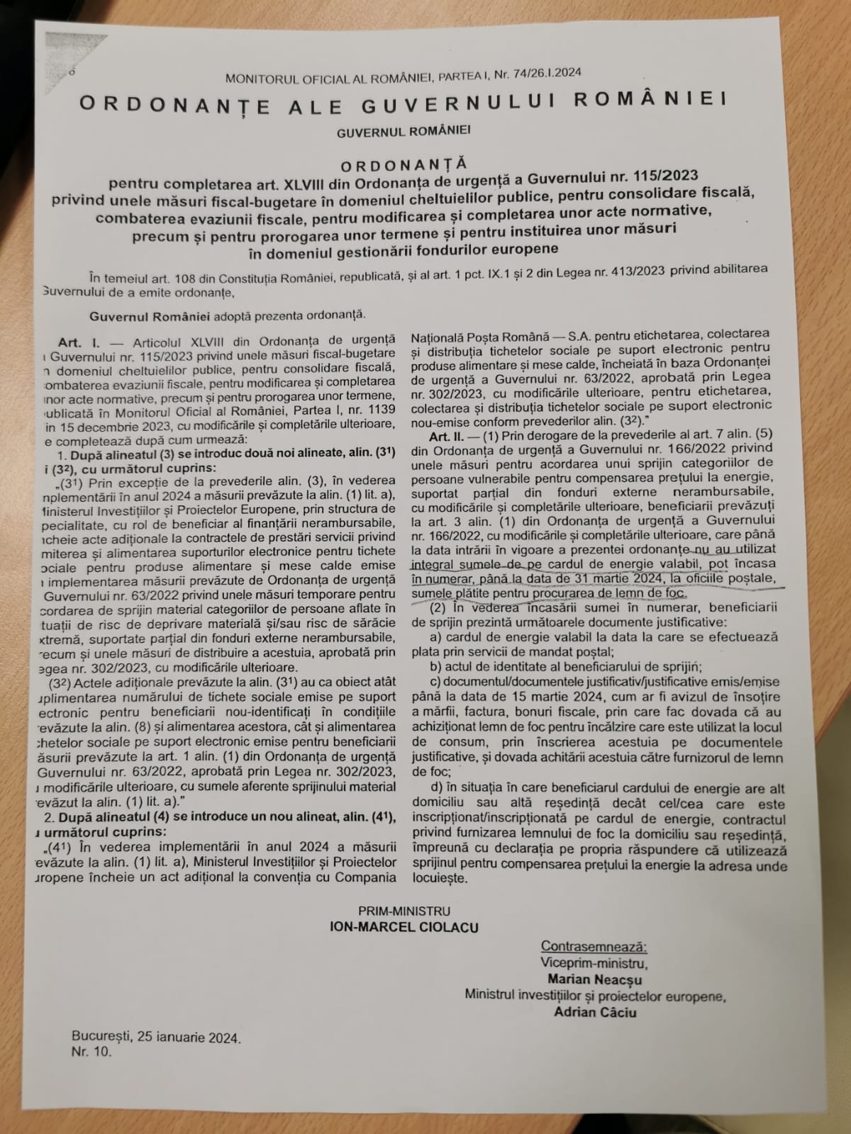 În altă ordine de idei, legea există, cel puţin pe hârtie. Conform art. II din OUG nr. 166/2022, beneficiarii cardurilor de energie pot încasa în numerar, la oficiile poştale, sumele plătite pentru procurarea lemnelor de foc, desigur, în baza unor documente justificative pe care le reamintim: cardul de energie valabil la data la care se efectuează plata prin servicii de mandat poştal; actul de identitate al beneficiarului de sprijin; documentele justificative emise până la data de 15 martie 2024, cum ar fi avizul de însoţire a mărfii, factura, bonuri fiscale, prin care se face dovada că s-a achiziţionat lemn de foc pentru încălzire care este utilizat la locul de consum, prin înscrierea acestuia pe documente justificative, şi dovadă achitării acestuia către furnizorul de lemn de foc; în situaţia în care beneficiarul cardului de energie are alt domiciliu sau altă reşedinţă decât cel/cea care este inscripţionat/inscripţionată pe cardul de energie, contractul privind furnizarea lemnului de foc la domiciliu sau reşedinţă, împreună cu declaraţia pe propria răspundere că utilizează sprijinul pentru compensarea preţului la energie la adresa unde locuieşte.