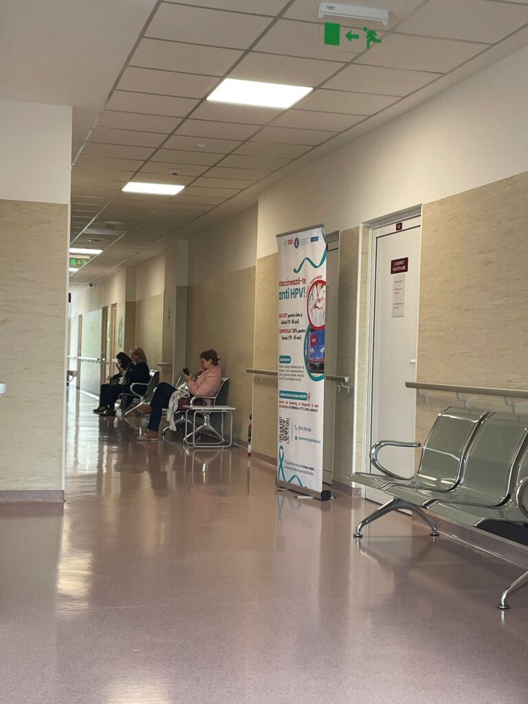 La etajul 1 al Centrului de Screening și Diagnostic în Boli Oncologice din Iași, în fața Cabinetului de Vaccinare Anti-HPV, o tânără mămică din Republica Moldova aștepta să intre pentru vaccinare. Spune că a venit special la Iași pentru că își dorește să se protejeze și ține mult la sănătatea ei.