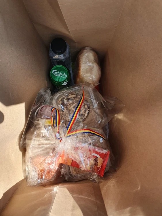 În semn de pomenire, organizatorii au oferit pungi cu produse alimentare variate. Astfel, în fiecare pungă oferită participanților la înmormântare s-au regăsit o sticlă de apă, o bere la doză (Carlsberg), o pâine, o porție de salam de biscuiți (desert tradițional românesc), colivă, caserole mici cu diferite preparate gătite și prăjituri de casă, în mai multe sortimente, potrivit click.ro.