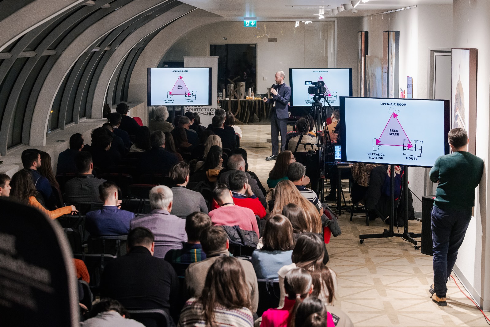 Audienţa de vineri seară a fost formată în mare parte din tineri arhitecţI ieşeni, mulţI dintre ei aflaţI la debut de carieră, care în România este foarte dificilă. Pentru mulţI dintre ei, după absolvirea facultăţii – una grea, comparabilă, poate, cu medicina -, găsirea unui loc de muncă în ţară, plătit rezonabil, şI care să ofere un cadru creativ şI stimulativ, este aproape o misiune imposibilă.