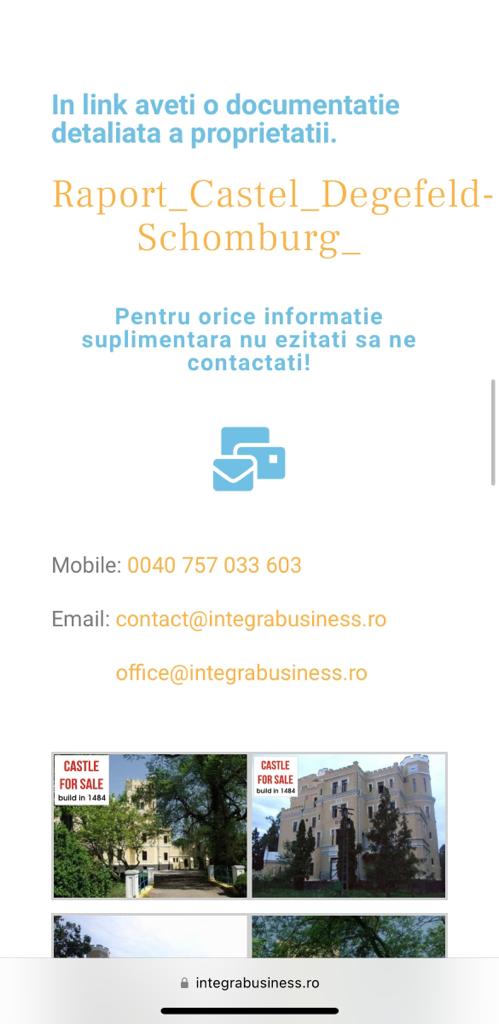 Pe site-ul companiei ieşene Integra Business Consulting, firmă controlată de Relu Fenechiu, fost deputat de Iaşi şi ministru PNL al Transporturilor, a apărut săptămâna trecută un anunţ de vânzare al Castelului Degefeld-Schomburg din comuna bihoreană Balc, care ar fi trecut în ultimii ani, direct sau indirect, prin mâinile mai multor oameni de afaceri controversaţi. Castelul a fost construit în 1484 şi a aparţinut bancherului Iosif Pincas, cumnatul domnitorului Ghica, valoarea estimată de piaţă a imobilului fiind cuprinsă între 4,5 mil. euro – 5,5 mil. euro, din care suprafaţa de teren 1,9 mil. euro, reiese din documentaţia detaliată care a însoţit oferta de vânzare a proprietăţii, publicată de firma lui Fenechiu.