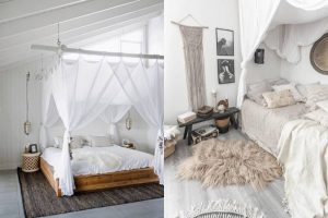 Baldachinul adaugă romantism camerei, un decor esențial boem, oferă un mic colț de intimitate cu moliciune și poezie.