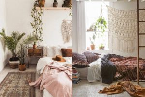 Această tendință de decorare se potrivește perfect cu stilul boem. Este o țesătură manuală monocromă sau multicoloră care aduce căldură pereților dormitorului. Poate fi folosit ca și covor sau agățat pe perete, adaugă o notă decorativă etnică.
