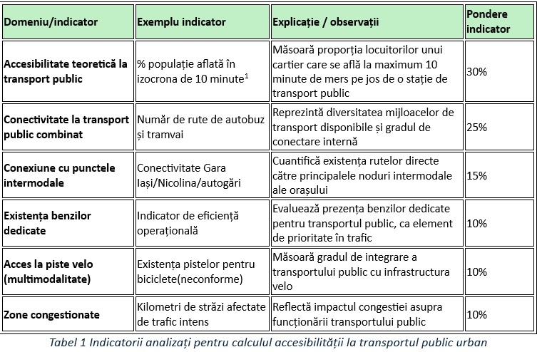 Tabel 1 Indicatorii analizați pentru calculul accesibilității la transportul public urban